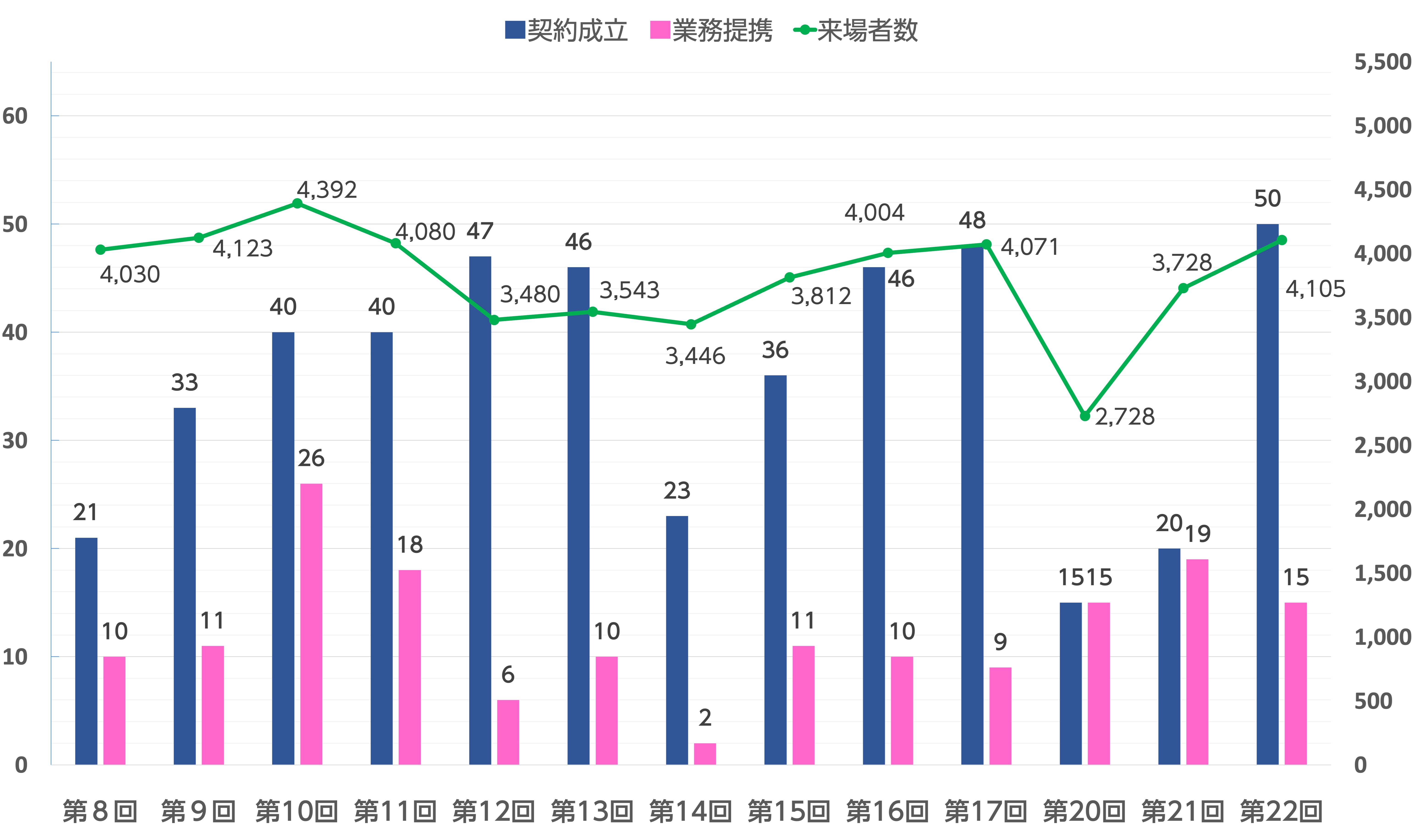 多くの情報交換や商談が行われ、実際のビジネスに結びついています。